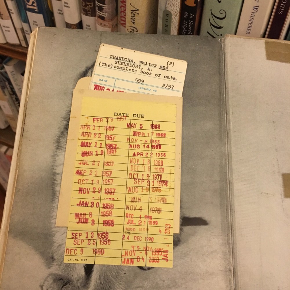 For instance, I came across an original copy of The Complete Book of Cats with photographs by Walter Chandoha from 1957. It still included the date due slips in the back with stamps throughout the years!