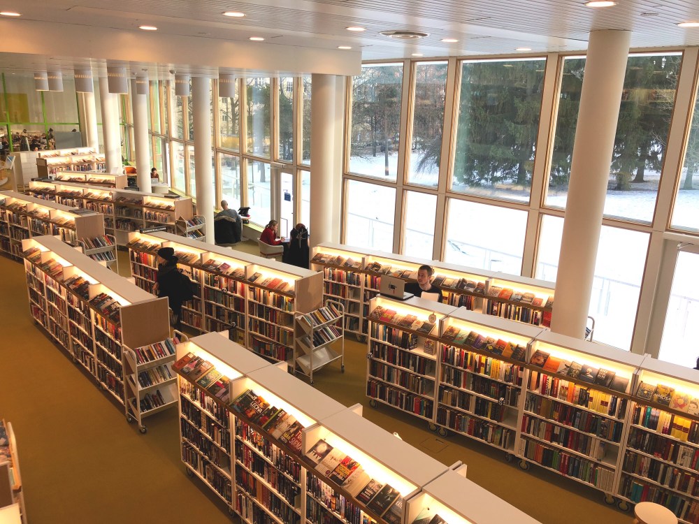 The library feels active but quiet and has the biggest silent reading room in Helsinki.