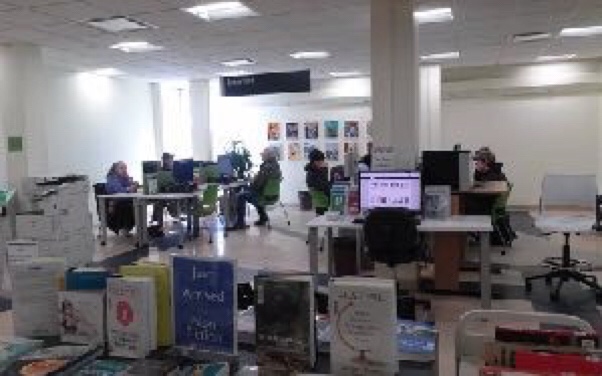 Red Deer Public Library (RDPL) has 2 entries: one next to City Hall with its beautiful civic square, and the other is walking distance to the central bus terminal. It has 4 levels, and it houses nearly 150.000 documents in all formats. On the basement, The Kiwanis Art Gallery displays temporary themed exhibitions and the Snell Auditorium hosts concerts, workshops or book sales. Selected activities are streamed live on the library webpage. On the first floor there is a coffee shop, Children’s library, the front desk, the book shop and security station. Fiction, Audio-visual, Large Print and Art Lending Program can be found on the second floor. The third floor includes Administration, a Meeting Room and a Teen Area, and the fourth is for Non- fiction, Internet, Newspapers, Magazines, Quiet Zone, and the local history sections.