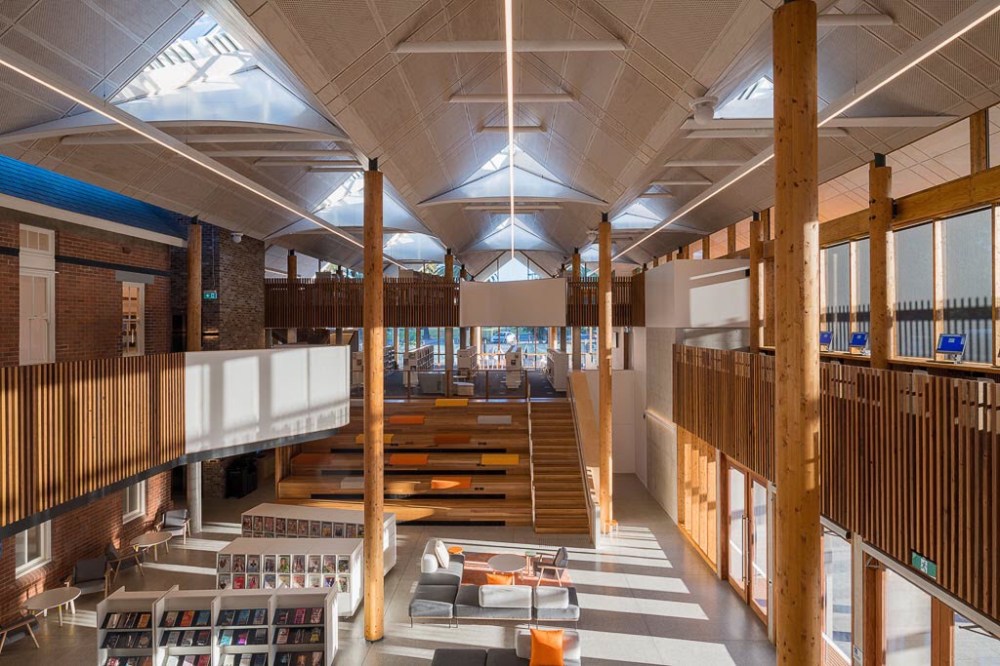 One of the most popular areas is the children’s library. Young library visitors have the option to get cosy in a padded shelf with a book or enjoy the outdoor courtyard, accessed through bi-fold doors, to take in some fresh air and down-time.