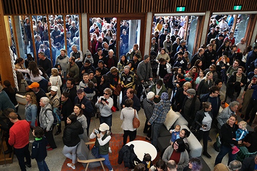 Marrickville Library crowds at opening day (picture courtesy of Inner West Council Library and History Services)