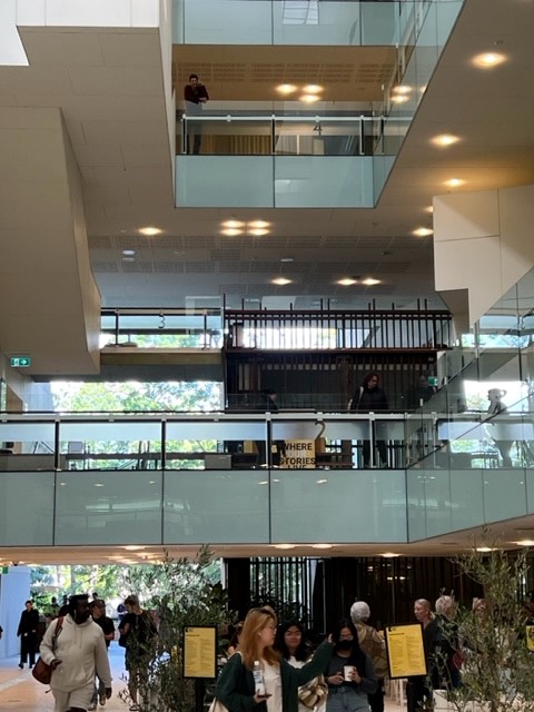I visited the State Library of Queensland on a Thursday afternoon in May, 2023, and it was pumping: it just happened to be the opening day of the Brisbane Writers Festival. A happy and relaxed crowd of Festival attendees, participants and organisers, tourists, students, parents with young kids, and other makers, doers and thinkers of various kinds mingled inside and outside the Library.