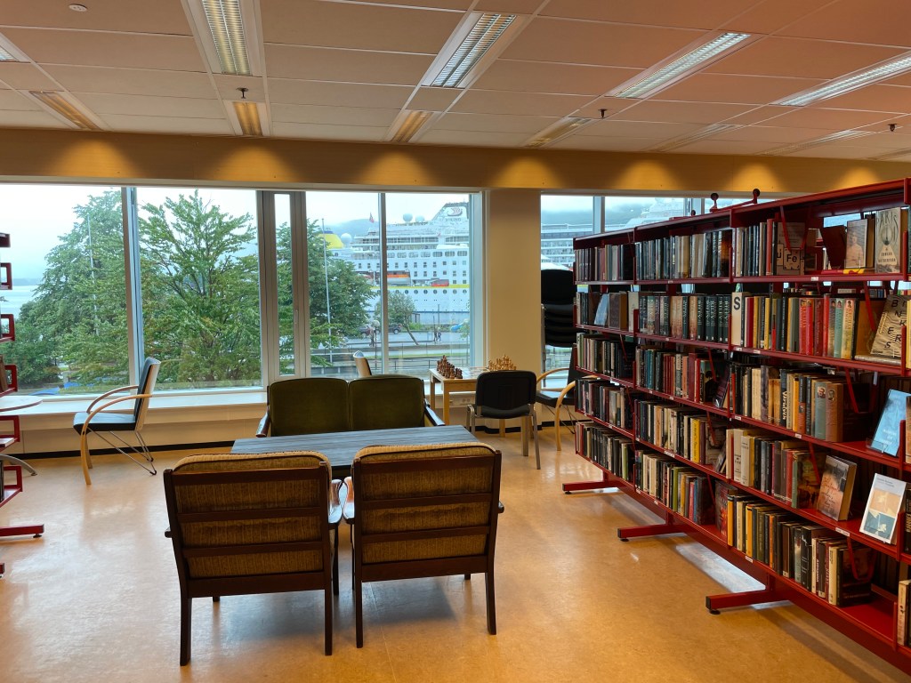 During my memorable visit to the Ålesund Bibliotek, I had the opportunity to indulge in the serene experience of observing majestic cruise boats while in the library. The library’s immense windows give you breathtaking views of the city’s bustling harbour. What an exceptional vista by which to explore the library’s hidden treasures!